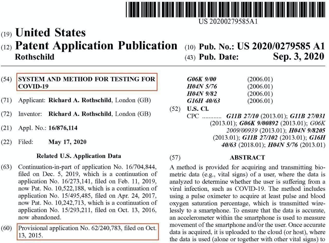 Proof That Rothschilds Patented Covid-19 Biometric Tests in 2015 and 2017.